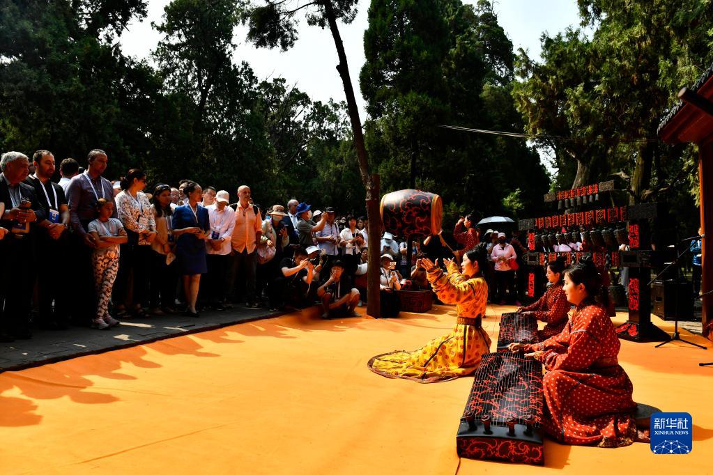 6月27日,在曲阜孔廟,嘉賓和游客在觀看以《詩經》為主題的雅樂表演。