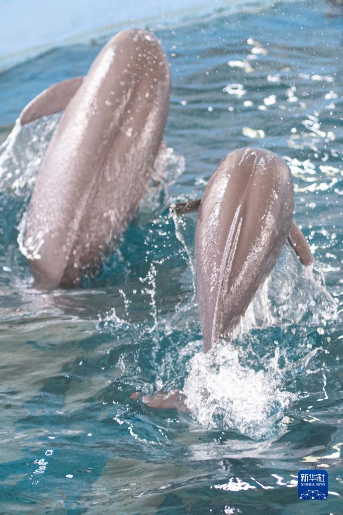 當日是中國科學院水生生物研究所白鱀豚館人工飼養的小江豚(編號為F9C22)周歲生日,武漢市農業農村局、中科院水生所和武漢白鱀豚保護基金會在白鱀豚館為小江豚慶生。