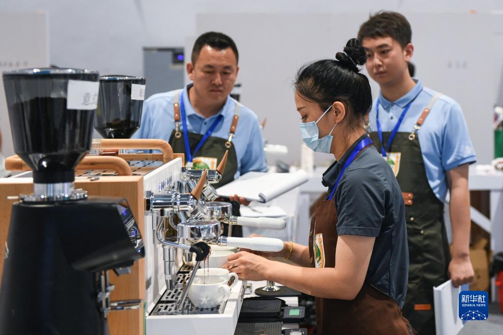 6月27日,參賽選手進行咖啡沖調項目比賽。