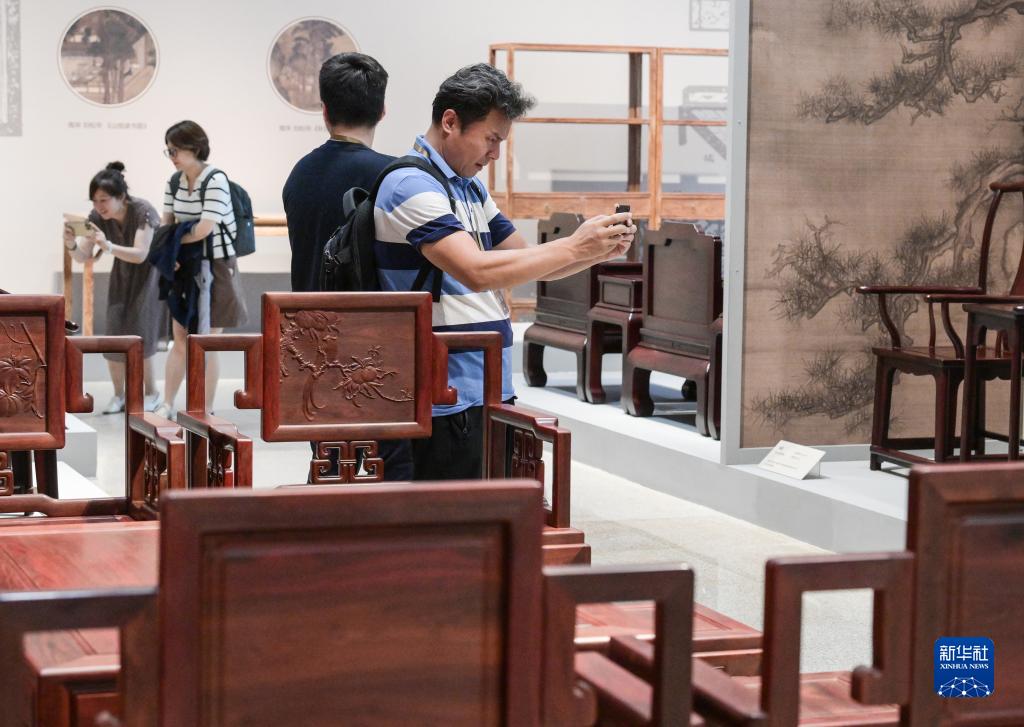 當日,“心·傳——陳玉樹新時代古典家具藝術展”在位于北京的中國工藝美術館、中國非物質文化遺產館舉辦,展出了高級工藝美術師陳玉樹近年創作的20套古典家具,展現出中國木作技藝之美。