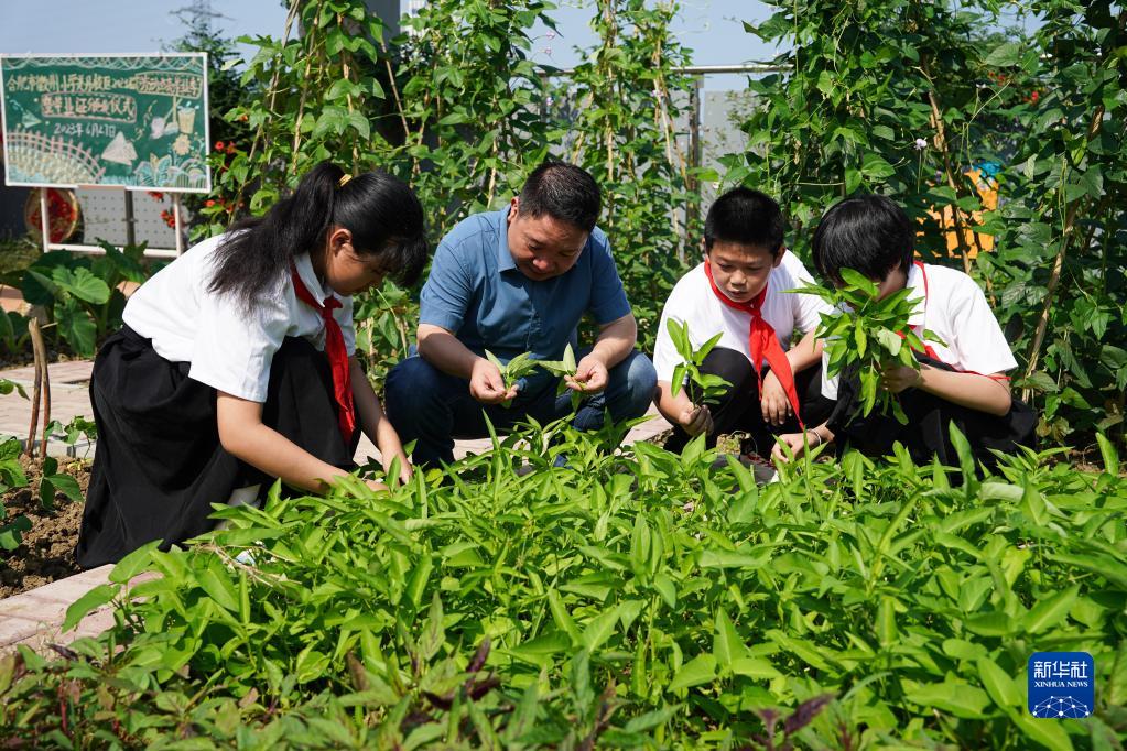 當日,安徽省合肥市徽州小學美丹校區勞動課程學習畢業證頒發儀式在該校教學樓頂的“空中農場”舉行,六年級畢業生們最后一次為“空中農場”的農作物澆水、施肥,用勞動點亮畢業季。