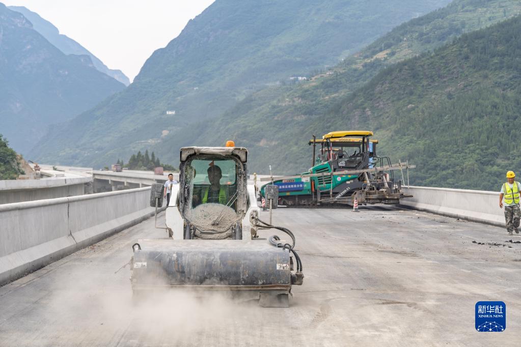 6月27日,在巫鎮高速公路二標段施工現場,施工人員在進行橋面防水施工前清掃路面灰塵。