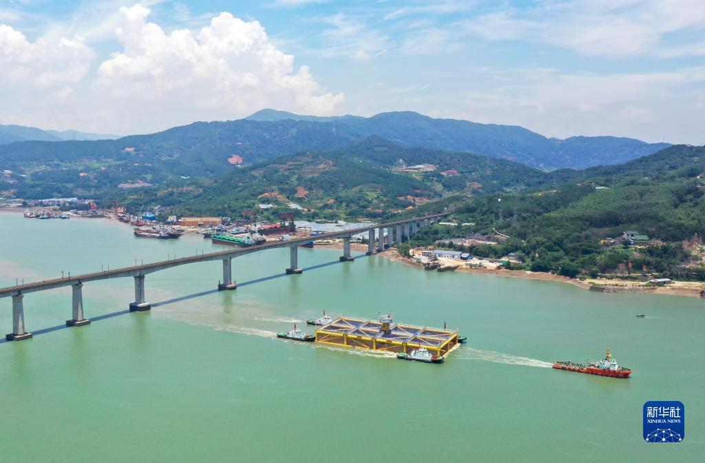 當日,大型深遠海養殖平臺“寧德1號”在福建福安拖航出海,駛向霞浦北礵島海域養殖區?!皩幍?號”主體長120米、寬56米、高12.5米,養殖水體達6.5萬立方米,并裝配自動投喂、氣溫海水監測、信息化自動控制等先進系統。