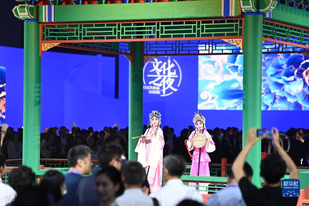 當晚,第十四屆夏季達沃斯論壇文化之夜在天津梅江會展中心舉行。與會嘉賓伴隨著文藝演出,品嘗天津特色美食,體驗中國傳統文化。新華社記者 趙子碩 攝