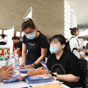 6月28日,求職者在招聘會上咨詢崗位信息。