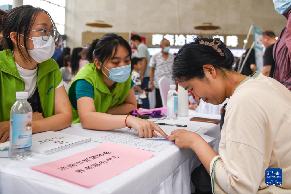 6月28日,求職者在招聘會上咨詢崗位信息。