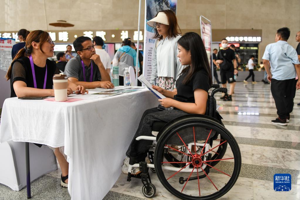 6月28日,求職者在招聘會上咨詢崗位信息。
