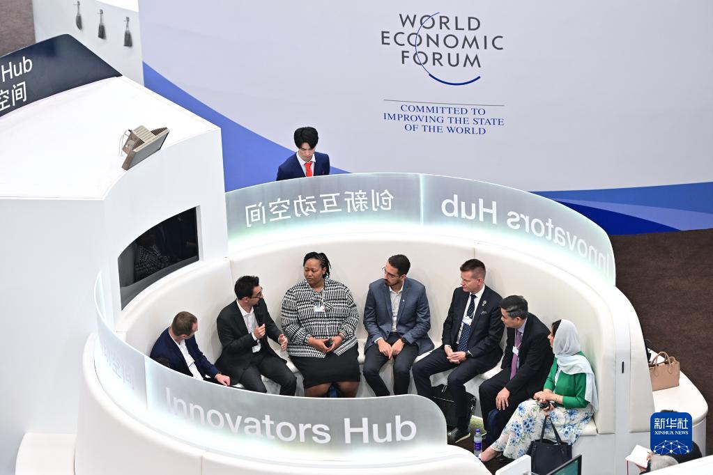 6月28日,與會者在論壇設置的新領軍者村內圍繞“開展糧食創新應對干旱”議題展開對話。