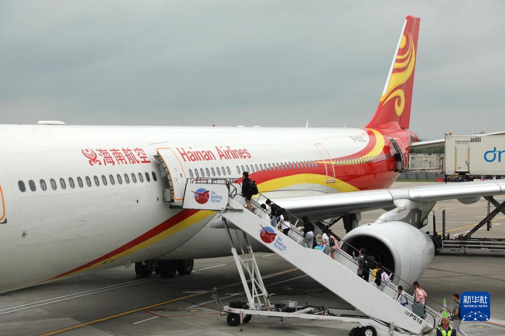 6月27日,在愛爾蘭首都都柏林機場,乘客登上一架即將飛往北京的中國海南航空公司客機。
