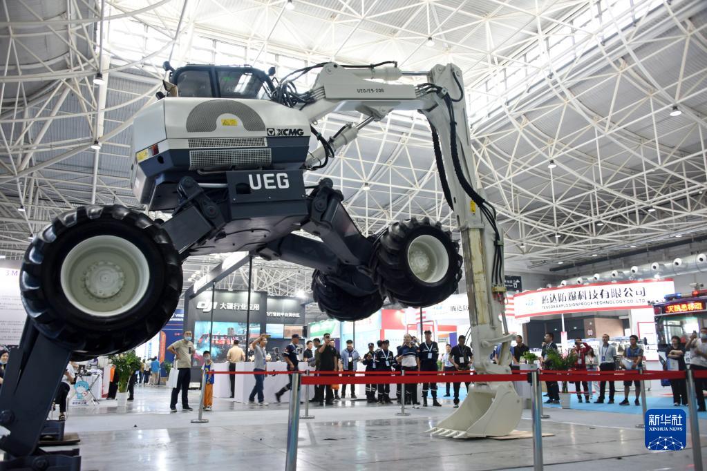 6月28日,參會者在展會上觀看挖掘機特技演示。