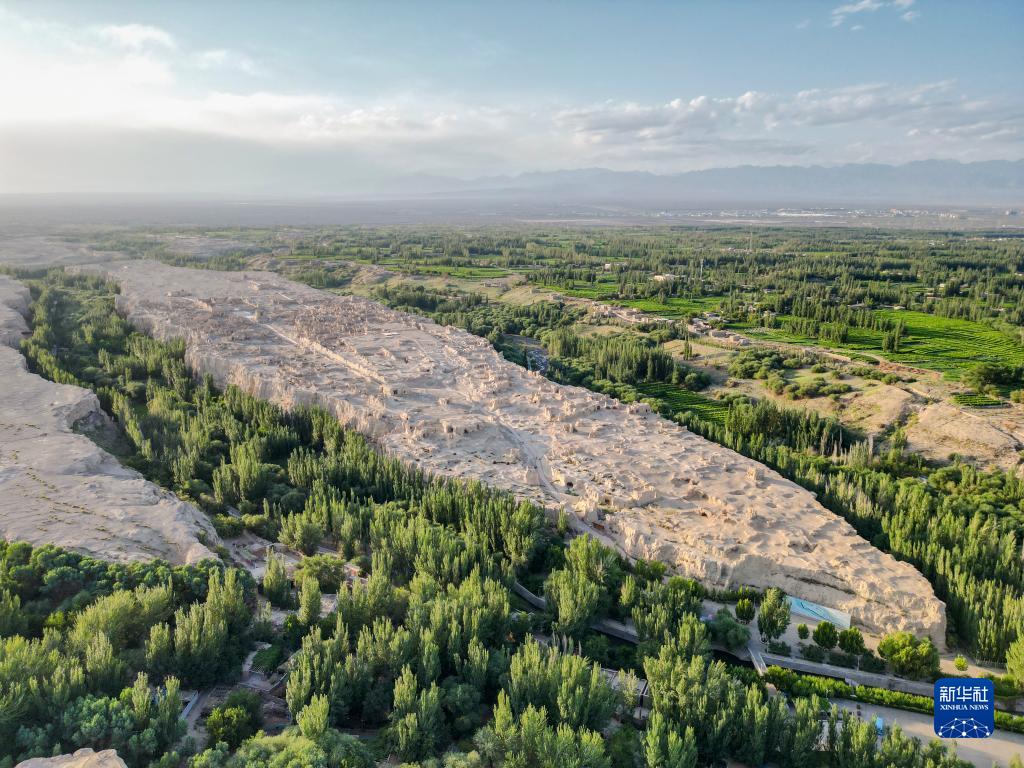 這是位于吐魯番市的交河故城景區(6月25日攝,無人機照片)。