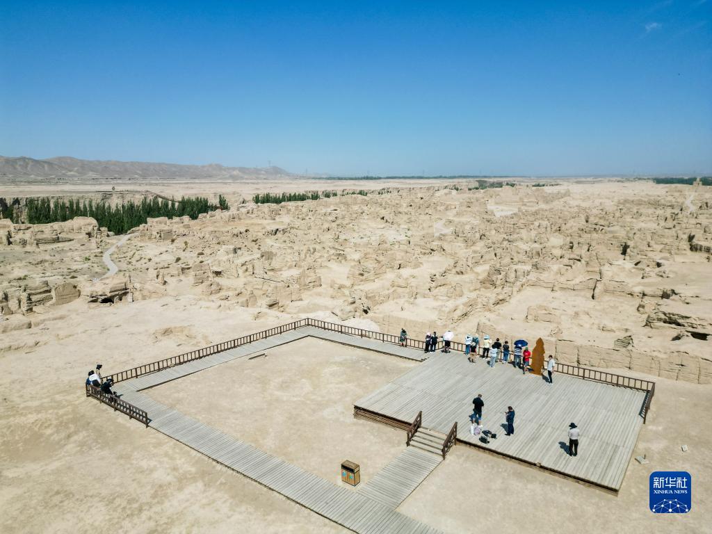 游客在位于吐魯番市的交河故城景區參觀(6月25日攝,無人機照片)。