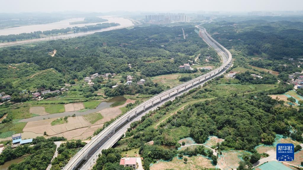 這是6月28日拍攝的長株潭城際軌道交通西環線一期工程的高架軌道(無人機照片)。