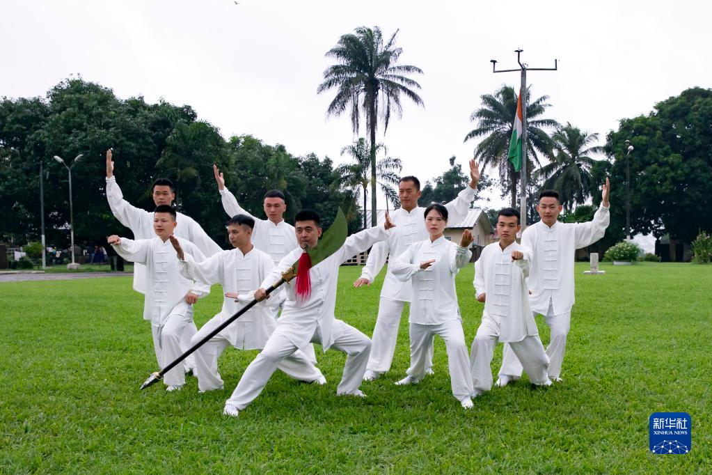 6月23日,中國海軍第43批護航編隊官兵在科特迪瓦班熱維爾孤兒院男校慰問時進行太極拳展演。
