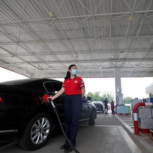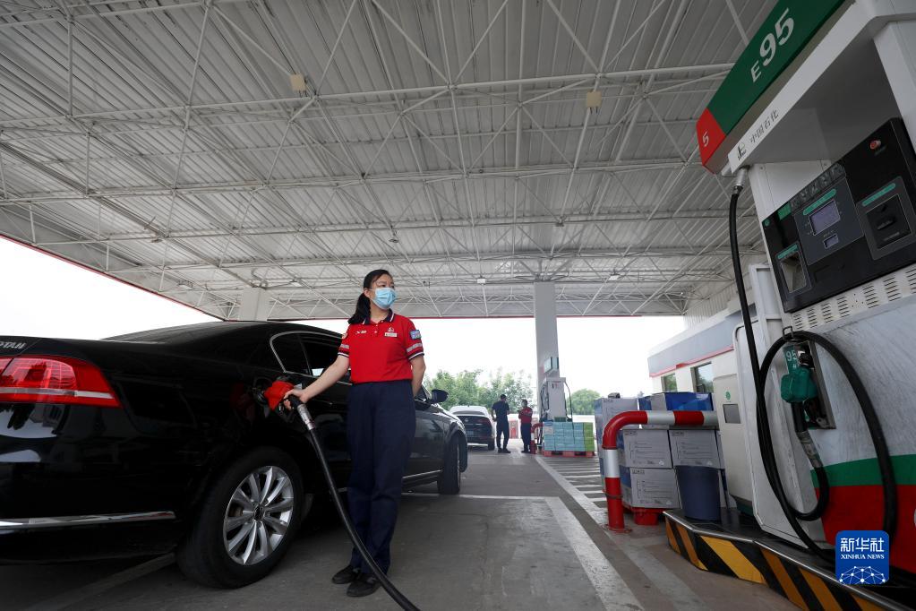 6月28日,河北省邢臺市任澤區一家加油站的工作人員在給汽車加油。