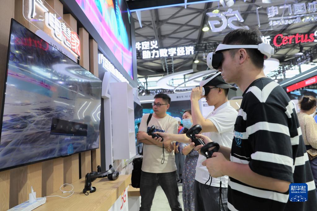 6月28日,人們在中國廣電展臺進行VR體驗。