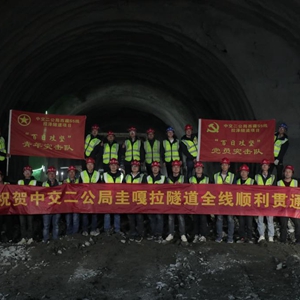 6月28日,施工人員在西藏S5線圭嘎拉隧道全線貫通后合影留念。