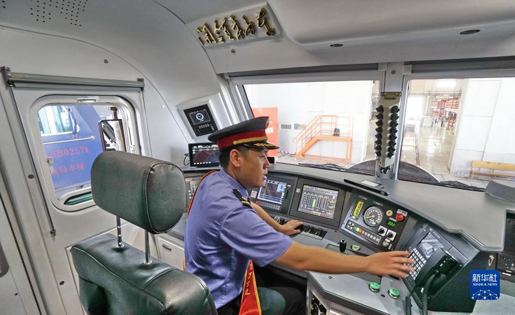 6月28日,“毛澤東號”機車駕駛員在介紹自動化駕駛系統。新華社記者 李欣 攝