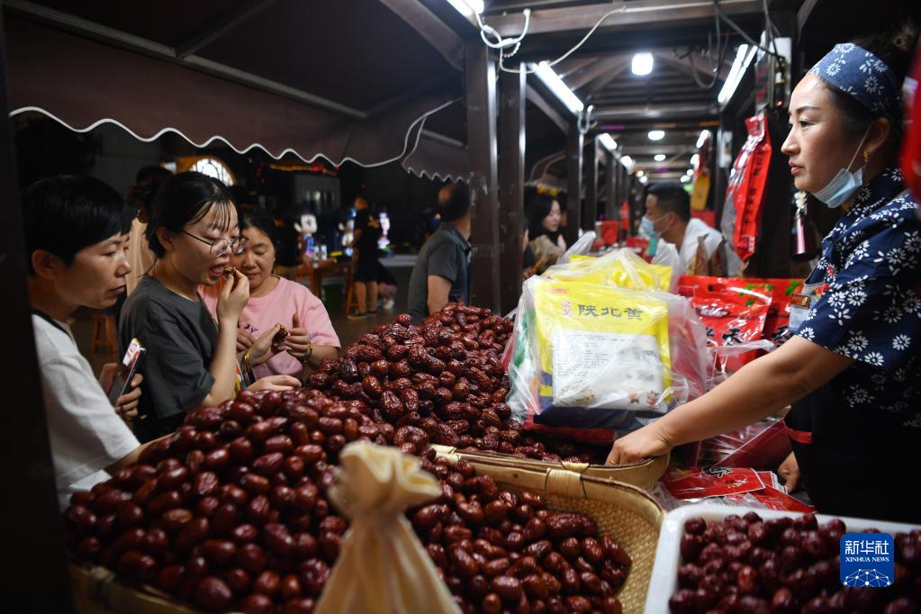6月28日,游客在延安市延州二道街夜市選購陜北特產。