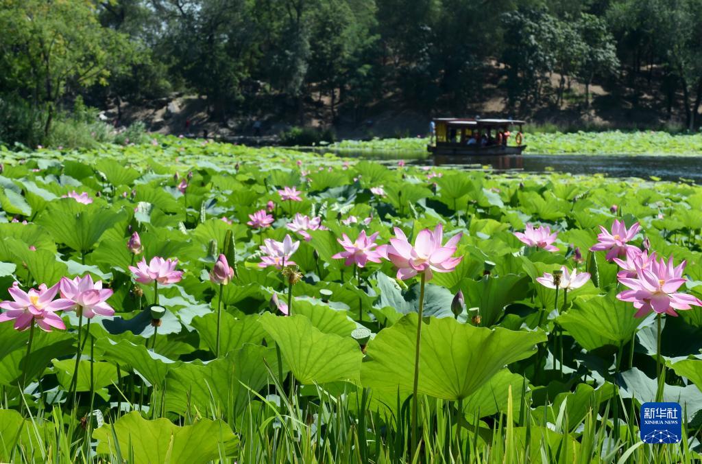 當日,以“荷樂不為”為主題的圓明園第二十八屆荷花節開幕。游客除沿岸觀景外,還可乘船穿行于園內曲折的水道中,賞荷姿、觀荷韻,體驗“蓮葉何田田”的美妙意境。荷花節期間,園內還有眾多與荷有關的文創活動,整個荷花節將持續至8月31日。