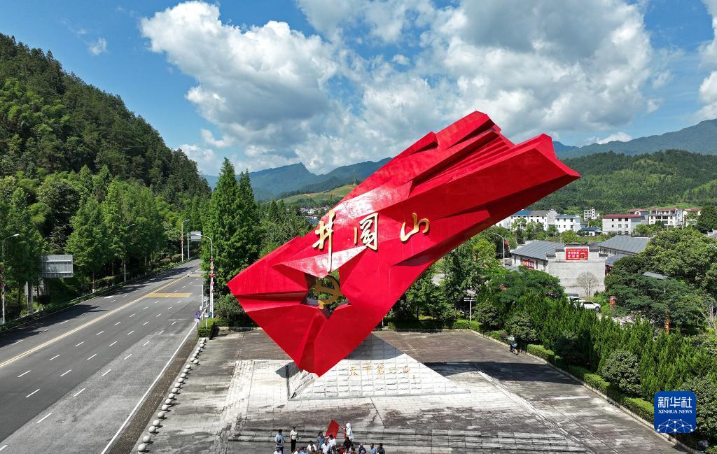 6月28日拍攝的“井岡紅旗”雕塑(無人機照片)。