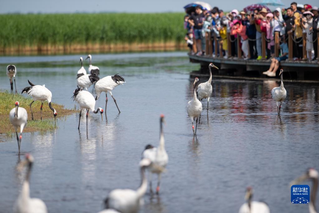 夏日,位于黑龍江省西部的黑龍江扎龍國家級自然保護區郁郁蔥蔥,丹頂鶴悠閑覓食,自在飛翔,呈現出一派生機勃勃的生態美景。