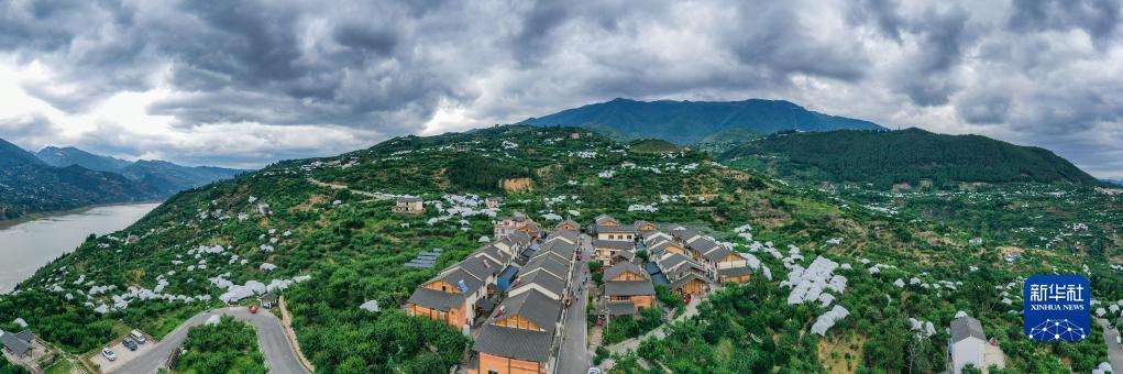 這是6月28日在重慶市巫山縣曲尺鄉柑園村拍攝的巫山脆李種植基地(無人機拼接照片)。