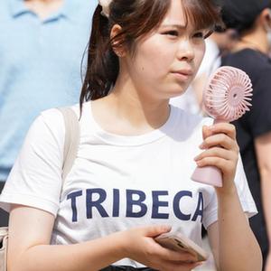 6月29日,一名手持便攜風扇的女子走在日本東京澀谷街頭。