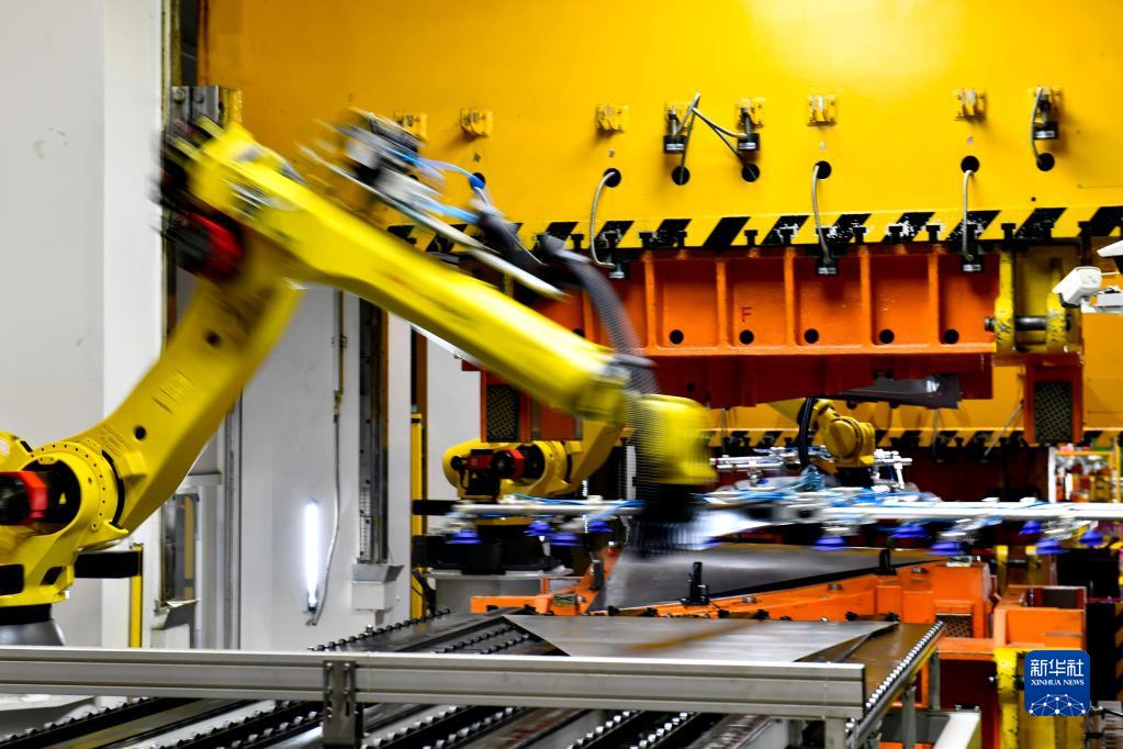 6月29日,在日照高新技術產業開發區日照中興汽車有限公司,工業機器人在沖壓汽車配件。