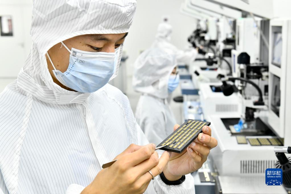 6月29日,在日照高新技術產業開發區智慧微電產業園,工作人員在生產聲表產品。