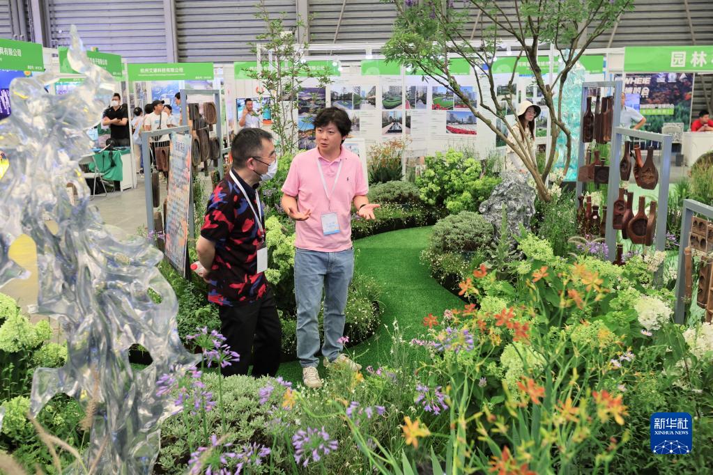 6月29日,參展商為參觀者介紹“印象花園”景觀。
