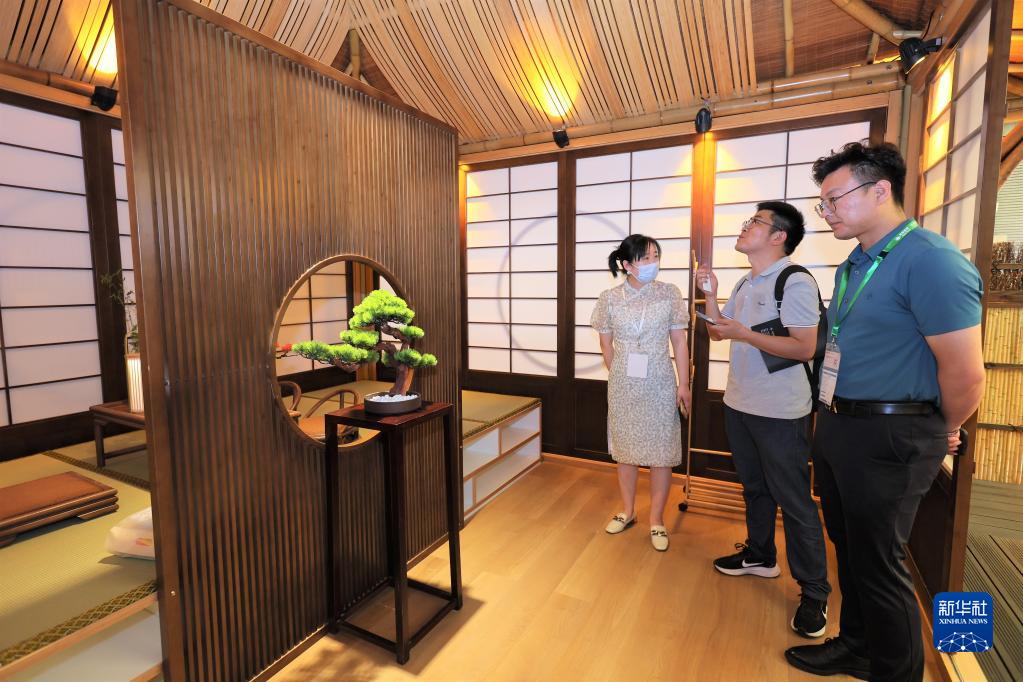 6月29日,參觀者在竹主題景觀庭院參觀。