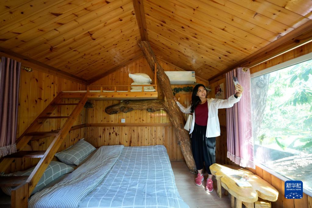 6月29日,游客在河北省遷西縣漢兒莊鎮一處民宿的房間內自拍。