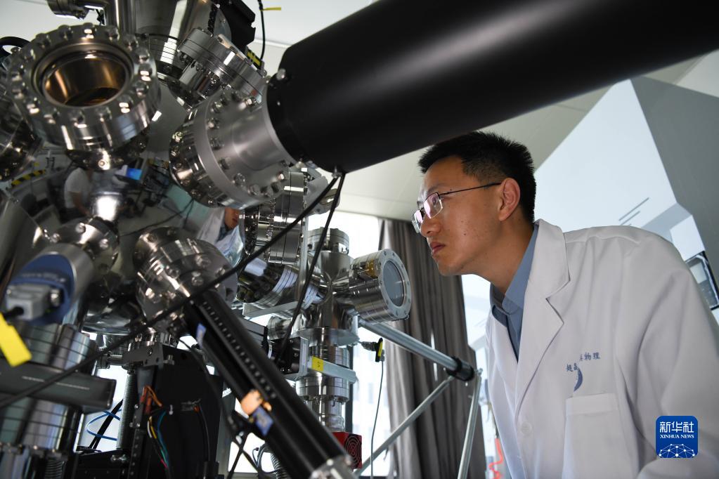 6月28日,在中科院合肥物質科學研究院強磁場科學中心實驗室,郝林在檢查真空中的樣品及等離子體羽輝情況。