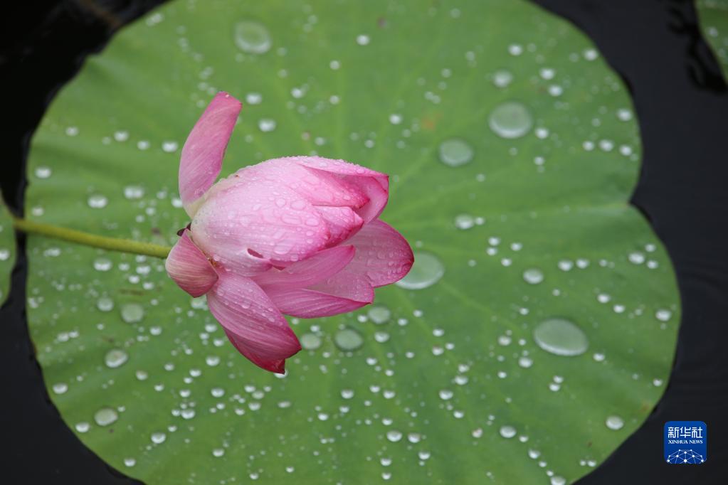 6月28日在河北省邯鄲市廣平縣中央公園內拍攝的的雨中荷花。
