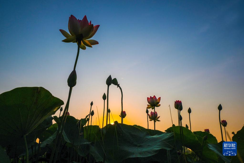 6月16日在山東省濰坊市坊子區太保莊街道前鋪村拍攝的晨光中的荷花。