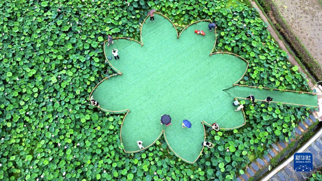 6月27日拍攝的浙江省余姚市梁弄鎮汪巷村荷塘(無人機照片)。