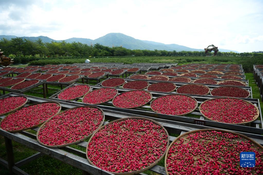 這是6月29日在位于博后村的亞龍灣國際玫瑰谷拍攝的食用玫瑰。玫瑰谷所在地曾是一片鹽堿地,現已發展成為集玫瑰種植培育、玫瑰產品研發銷售、觀光旅游等為一體的玫瑰產業基地。