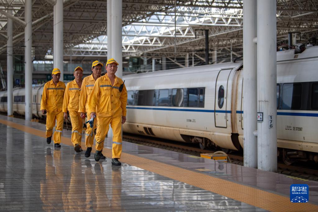 隨著暑運臨近,鐵路杭州房建公寓段溫州保潔工區的上水卸污工人們愈發忙碌起來。每當高鐵??空九_時,工人們拖著水管,在車廂下方穿梭作業,保障高鐵列車的運行與旅客的出行體驗。目前,溫州保潔工區每天要對100余趟往來的高鐵列車進行上水卸污作業,每趟作業都要沿著近500米的站臺走一個來回,一天下來,工人們行走的步數超過三萬步。