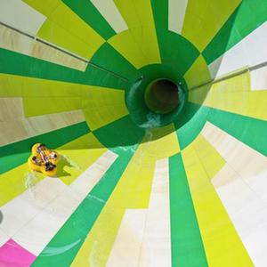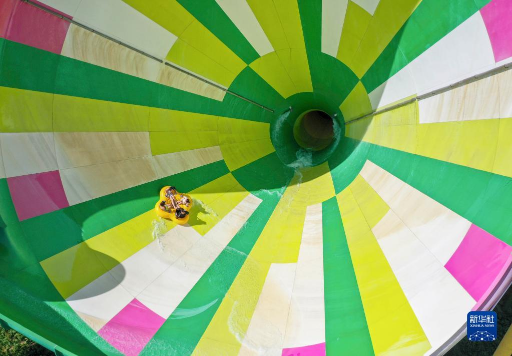 炎炎夏日,人們前往水上樂園,體驗趣味水上活動,戲水消暑,享受清涼。