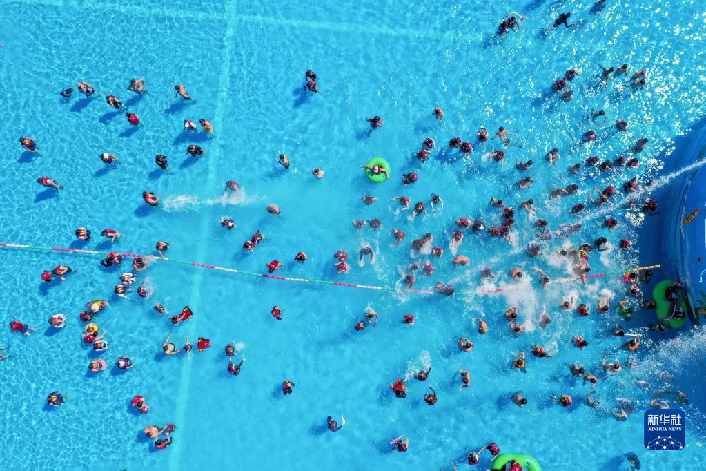 炎炎夏日,人們前往水上樂園,體驗趣味水上活動,戲水消暑,享受清涼。