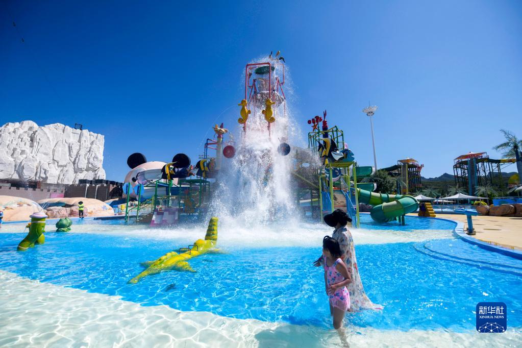 炎炎夏日,人們前往水上樂園,體驗趣味水上活動,戲水消暑,享受清涼。