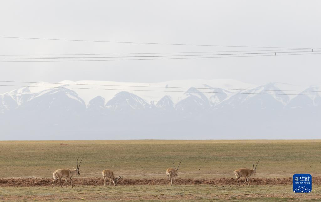 6月15日,在長江源地區的楚瑪爾河附近,幾只藏羚羊在覓食。新華社記者金立旺攝