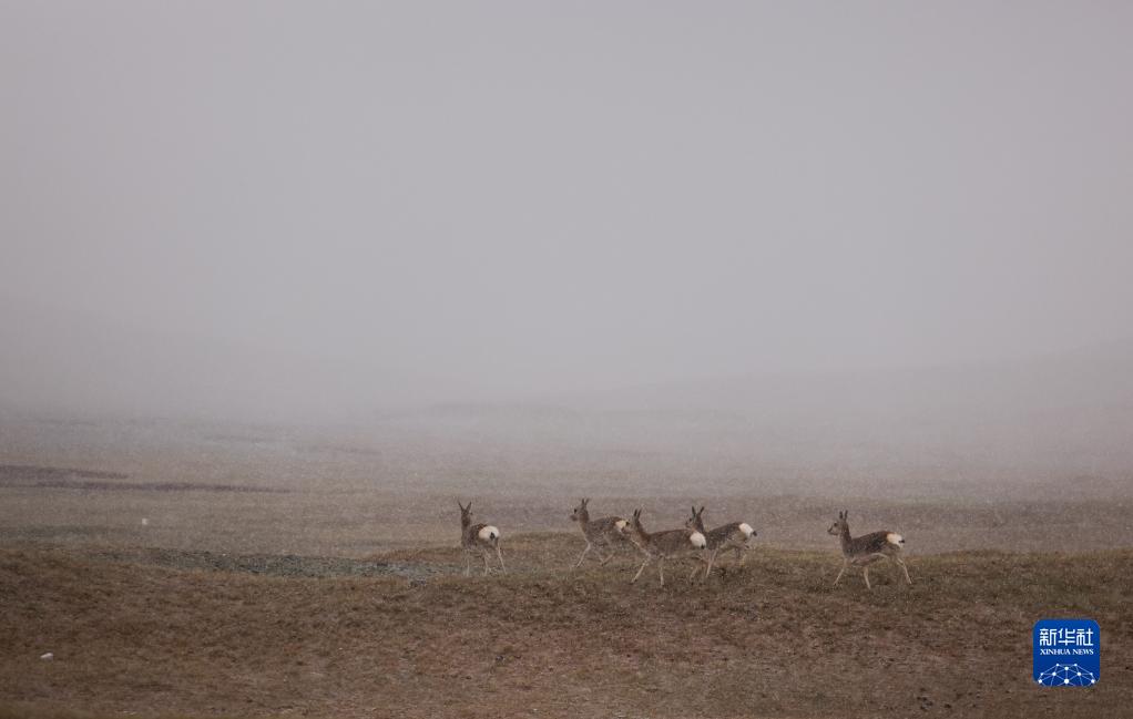 6月16日,在長江源地區的楚瑪爾河附近,幾只藏原羚在嬉戲。新華社記者金立旺攝