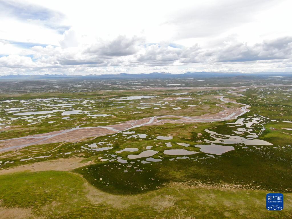 這是2021年7月23日在長江源地區拍攝的當曲(無人機照片)。新華社記者張龍攝