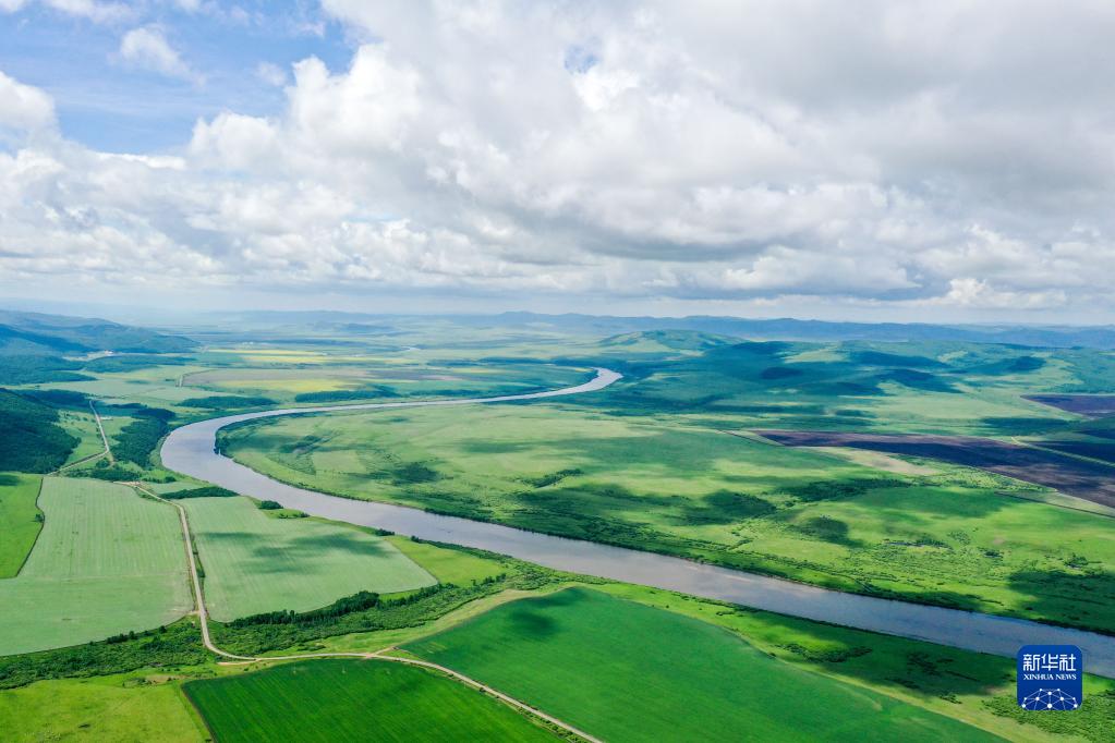6月29日拍攝的額爾古納河風光(無人機照片)。