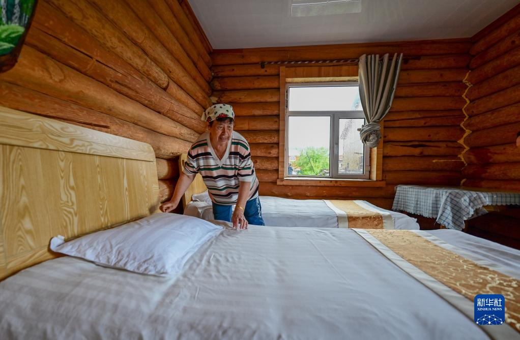 6月28日,卓婭在收拾客房。卓婭一家從2003年開始經營家庭游,從最初的4間客房已經發展為24間,還能提供旅游項目服務。