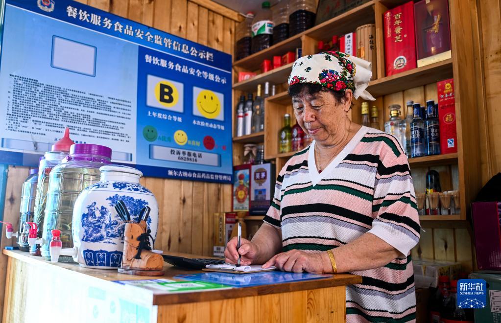 6月28日,卓婭在記賬。卓婭一家從2003年開始經營家庭游,從最初的4間客房已經發展為24間,還能提供旅游項目服務。