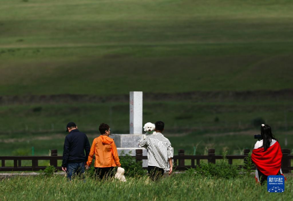6月29日,游客在蒙兀室韋蘇木一處界碑附近游覽。
