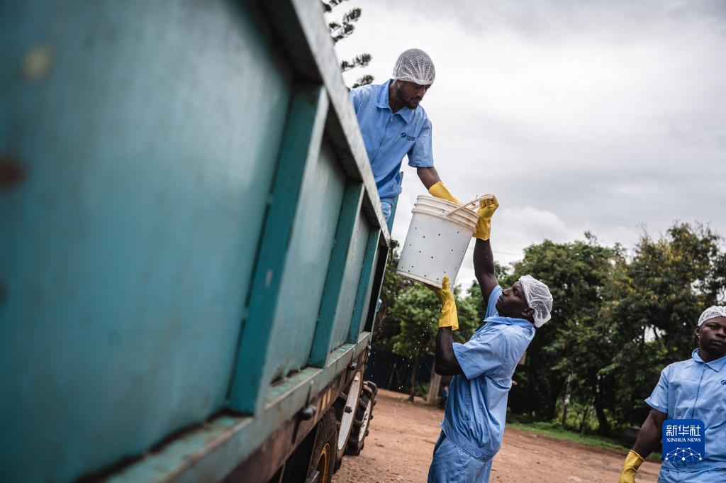 在肯尼亞夸萊郡希莫尼鎮,工作人員將新捕撈的鳀魚搬運上車(6月22日攝)。新華社記者 王冠森 攝